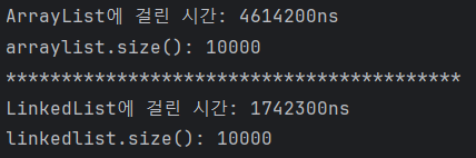 System.out.println("LinkedList에 걸린 시간: " + gap + "ns");
