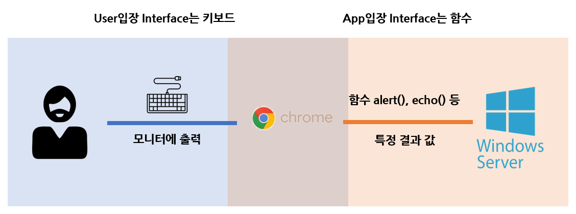 App입장에서는 자신보다 상위에 있는 시스템(윈도우 운영체제)과 대화하고, 접점은 특정한 Code(함수)가 된다.