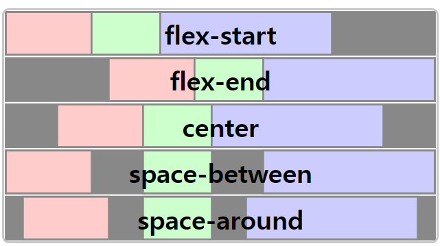 - flex-start(기본값): 아이템들을 시작점으로 정렬한다.