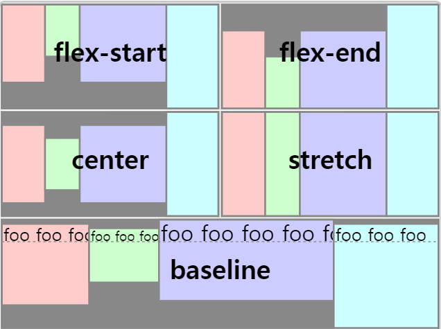 - baseline: 아이템들을 텍스트 베이스라인을 기준으로 정렬한다.