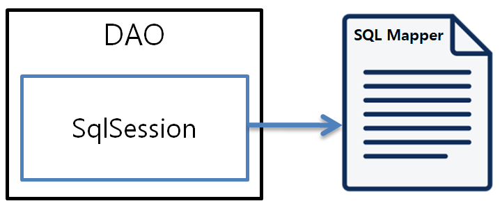 * DAO의 SqlSession 객체: SQL mapper 파일 참조, DB CRUD 관련한 메서드를 가지고 있다.