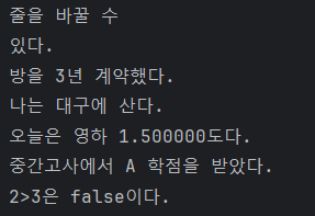 내가 원하는 데이터 형식으로 출력할 수 있다. (줄바꿈 포함 X)