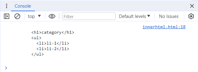 id가 "content"인 HTML 요소에 접근한 뒤, innerHTML 프로퍼티의 값을 콘솔에 출력하는 코드이다.