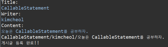 - CallableStatement는 미리 작성해둔 프로시저를 실행하는 데 사용한다.