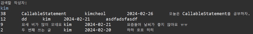 bbs 게시글의 작성자 중 일부 문자가 포함된 작성자를 검색하는 프로시저를 만들어서 자바에서 검색이 가능하도록 만들어보자.