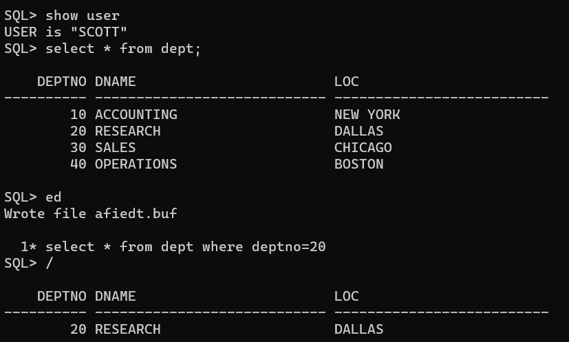 ※ 버퍼 편집시 ; 대신 / 를 쓴다. - 버퍼에서는 마지막 라인에 / 를 넣는다.