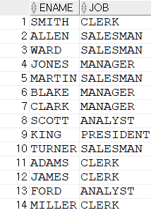 SELECT deptno, job FROM emp ORDER BY deptno ASC;