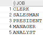 (DISTINCT 바로 뒤의 한 칼럼에만 적용되는 것이 아니라 출력되는 행 전체가 영향을 받는다.) - DISTINCT뒤에 여러 개의 컬럼이 기술되면 나타나는 행은 컬럼의 조합들이 중복되지 않게 나타난다.
