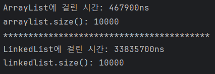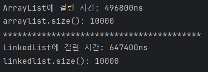 System.out.println("LinkedList에 걸린 시간: " + gap + "ns");