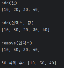 System.out.println("\nadd(인덱스, 값)");